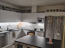 Astianpesukone, Induktioliesi, Pakastin, Jääkaappi, Laminaattitasot, Paljon työskentelytilaa, Liesituuletin