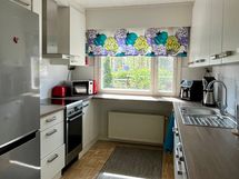 - Keittiön varusteet: Jääkaappipakastin, astianpesukone, liesi, liesituuletin ja uuni