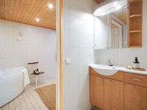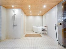 - Sauna, sähkökiuas, kylpyhuone, erillinen wc 3kpl, suihku, suihkuseinä, poreallas, peilit, peilikaappi, kaapit, allaskaappi, pesukoneliitäntä, lattialämmitys Vesikiertoinen, kiinteät valaisimet.