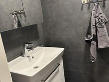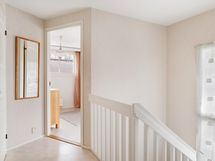 - Sauna, sähkökiuas, kylpyhuone + yläkerran kph wc, erillinen wc alakerrassa, suihku yläkerran kph:ssa, peilikaappi yläkerrassa ja alakerrassa, pesukoneliitäntä yläkerrassa, kiinteät valaisimet. Kiukaan kellokytkin vaihdettu arviolta 2022 sähkömiehen toimesta. Hanat vaihdettu arviolta 2015.