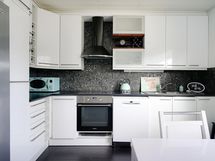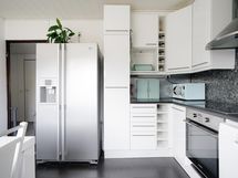 - Jääkaappipakastin, erillisuuni, liesitaso, induktioliesi, liesituuletin, astianpesukone, kaapistot, kiinteät valaisimet.