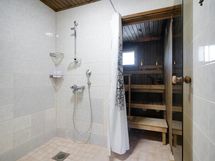 - Sauna, sähkökiuas, erillinen wc, suihku, suihkuseinä, peilit, allaskaappi, pesukoneliitäntä, lattialämmitys Vesikiertoinen wc/kph, kiinteät valaisimet.