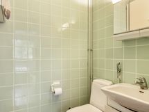 - Varusteet: Suihku, Suihkuseinä, Pesukoneliitäntä, Allaskaappi, Peilikaappi. WC: Alkuperäiskuntoinen. Varusteet: Lattiaan asennettu WC, Allaskaappi, Peilikaappi