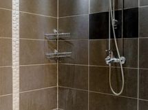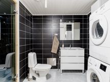 - Sauna, puukiuas, kylpyhuone, suihku, suihkuseinä, erillinen wc, peilit, kaapit, allaskaappi, pesukoneliitäntä, lattialämmitys kph:ssa ja khh:ssa. Kiinteät valaisimet.