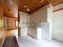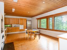 - Liesi: sähköliesi, leivinuuni. Työtasot: laminaatti. Kylmäsäilytys: jääkaappi/pakastin. Varustus: astianpesukone, kiinteät valaisimet, liesituuletin / hormi. Todella iso keittiö, jonka jatkeena apukeittiö, keittiöön on suoraan myös oma sisäänkäynti