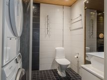 - Pesutilojen varusteet: WC-istuin, suihku, suihkuseinä, pesukoneliitäntä, lattialämmitys, peili, allaskaappi, peilikaappi ja bidee-suihku. Pesutilojen kuvaus: Kaksi kylpyhuonetta, alakerran kylpyhuone ja sauna uusittu 2011. Erillisten WC:n lukumäärä: 2. Erillisen WC:n kuvaus: WC:t kylpyhuoneiden yhteydessä.