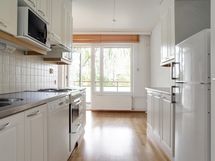 - Jääkaappipakastin, sähköliesi, liesituuletin, astianpesukone, kaapistot, kiinteät valaisimet.