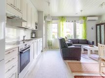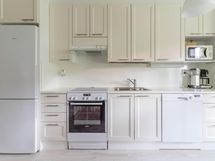 - Jääkaappi/pakastin, uuni, astianpesukone, kaapistot, keraaminen liesi, liesikupu/-tuuletin