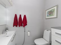 - Pesutilojen varusteet: Suihku, pesukoneliitäntä ja lattialämmitys. Erillisten WC:n lukumäärä: 1. Erillisen WC:n varusteet: WC-istuin, bidee-suihku, lattialämmitys, peili, allaskaappi ja lattiakaivo.