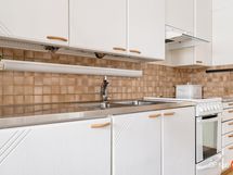 - Jääkaappipakastin, lattialiesi, sähköliesi, liesituuletin, astianpesukone, kaapistot, kiinteät valaisimet.