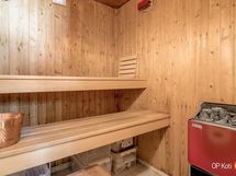- Sauna, sähkökiuas, kylpyhuone, suihku, suihkuseinä, peilit, peilikaappi, kaapit, allaskaappi, pesukoneliitäntä, kiinteät valaisimet.