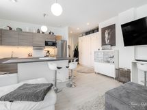 - Keittiö 2018, tyylikkäät kaapistot, jääkaappi/pakastin, induktioliesi, liesituuletin (aktiivihiili), integroitu mikro, astianpesukone
