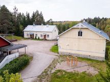 - Kuvaus: Asuinrakennuksen pihapiirissä vanha pihasauna. Liikuntasalin yhteydessä on saunatilat ja pesuhuoneet. sähkökiuas, puukiuas