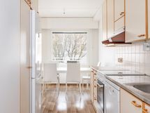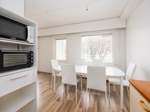 - Liesi: keraaminen. Työtasot: laminaatti. Kylmäsäilytys: jääkaappi/pakastin. Varustus: mikroaaltouuni, astianpesukone, kiinteät valaisimet, liesituuletin / hormi. Keittiön yhteydessä tilava ruokailutila, joka aukeaa olohuoneeseen