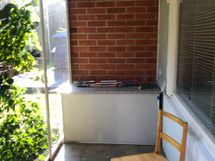 - Lasitettu parveke klinkkerilattia puulaatikko