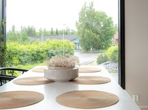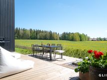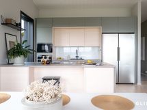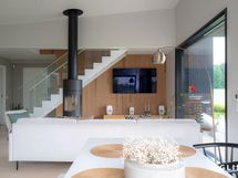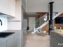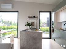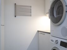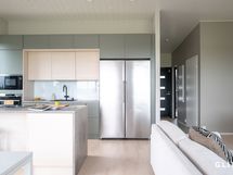 - Keittiön varusteet: jääkaappi, pakastin, erillisuuni, induktioliesi (sisäänrakennetulla aktiivihiilisuodattimella), mikro ja astiapesukone.
