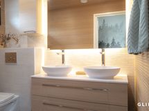 - Yläkerran wc (suihku pois, kaksi allasta). Allaskaappi ja malja-altaat muutostöinä.