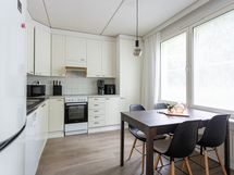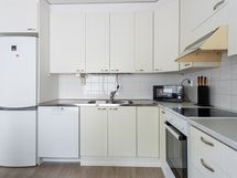 - Liesi: keraaminen. Työtasot: laminaatti. Kylmäsäilytys: jääkaappi/pakastin. Varustus: astianpesukone, liesituuletin / suodatin. Keittiön kaapiston ovet on uusittu jossain vaiheessa.