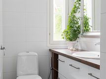 - Pesutilojen kuvaus: Ikkunallinen. . Varustus: lattialämmitys, suihku. Erillisen WC:n kuvaus: Varustus alakerran wc: bidee, ikkuna, iso peili seinällä, paljon allaskaapistoa, lattialämmitys sähköllä.