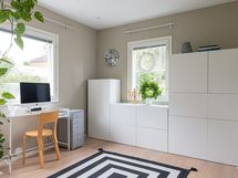 - Kuvaus: Ulkovarasto asunnon sivussa, jonka koko on n. 15 m2 (n. 10 neliön osuus on pidetty lämmitettynä sähköpatterilla ympäri vuoden harrastetilana). Talossa lisäksi vaatehuone ja paljon kiinteitä kaapistoja.