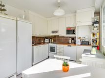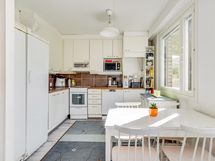 - Jääkaappi, pakastin, astianpesukone, kaapistot, keraaminen liesi, kiinteä valaisin