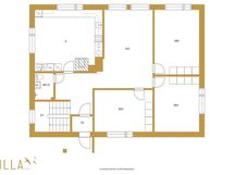 - Kiinteistöllä olevan asuinrakennuksen asuinpinta-alaa ei ole mitattu nykyisin käytettävän huoneistoalan laskemismenetelmän mukaisesti (standardi SFS 5139) eikä asuinpinta-alaa ole sittemmin tarkistusmitattu. Huoneistoalaa ei ole mitattu. Tämän vuoksi asuinrakennuksen ilmoitettu asuinpinta-ala saattaa poiketa merkittävästi todellisesta huoneistoalasta. Huoneistoalaan on laskettu yläkerran asuintilat sekä alakerran maanpäällisen kellarikerroksen takkahuone. Kerrosala sisämittojen mukaan noin 231,3 m2. Alakerran tilat ovat kauttaaltaan lämmitettäviä asumista palvelevia aputiloja.