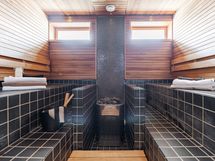 - Kiuas: Sähkökiuas. Saunassa ikkunat. Pihasaunassa puukiuas.