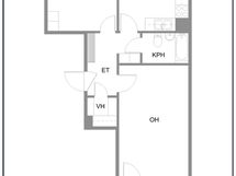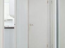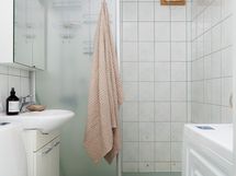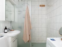 - Varustus: suihkuseinä, pesukoneliitäntä, lattialämmitys, wc-istuin, suihku, peilikaappi, kylpyhuonekaapisto.