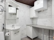 - Sauna, sähkökiuas, kylpyhuone, suihku, suihkuseinä, peilikaappi, kaapit, allaskaappi, pesukoneliitäntä, lattialämmitys, kiinteät valaisimet.