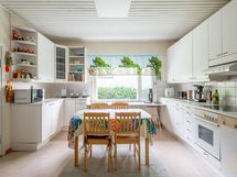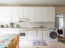 - Keittiön varusteet: Jääkaappi, erillisuuni, liesi, liesituuletin, astianpesukone (Yksi pesuohjelma toimii) ja vuolukivitakka, pyykinpesukone. Liesi: Keraaminen liesi. Työtason materiaali: Laminaatti.