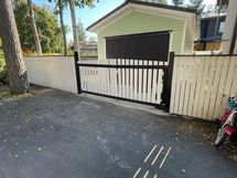- Rakennuksessa on 2 pientä ikkunaa sekä käyntiovi ja iso sähkökäyttöinen nosto-ovi, joka avautuu kaukosäätimellä.