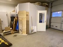 100m2 korkea hallivarasto / työtila nosto-ovella.