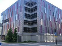 Parkkipaikka aivan hissin edessä.