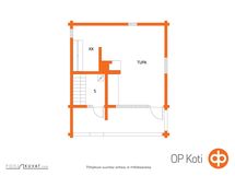 Keittiö: lattiassa raakavalu, seinät hirsi. Tupa: lattiassa raakavalu, seinät hirsi.