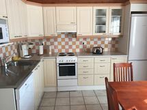 Huoneisto on täysin kalustettu sisältäen liinavaatteet ja pyyhkeet 8 hengelle, koneellistetun keittiön (liesi, jääkaappi, mikroaaltouuni, astianpesukone, kahvin- ja vedenkeitin, leivänpaahdin, ruuanlaittovälineet), astiaston 8:lle, pyykinpesukoneen, kuivauskaapin, silitysvälineet, pölynimurin, TV:n, DVD- ja CD-soittimen/radion, takan, 2 polkupyörää, veneilyliivit, lämpöpistokkeen. Erillinen autokatos.