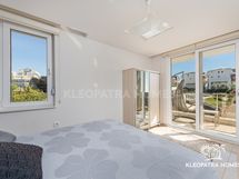 Yläkerrassa on kaksi tilavaa makuuhuonetta ja ylellinen spatila omalla saunalla ja poreammeelle. Saunasta pääsee kätevästi viilentymään omalle terassille josta myös on luonnollisesti maisema merelle.