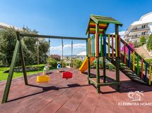 Suuri hyvinhoidettu vehreä rinnetontti kukkaistutuksineen on viihtyisä ja rauhallinen. Pienyhtiössä on asuntoja yhteensä vain 38. Uima-altaalle paistaa aurinko koko päivän ja allasalueella voi myös ihailla käsittämättömän upeita auringonlaskuja. Talvella käytössä on lämmitetty sisäallas. Sisätiloissa on myös sauna ja hamam, kuntosali ja pingispöytä.