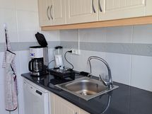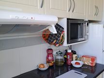 Paljon kaappitilaa, Paljon työskentelytilaa, Laminaattitasot, Astianpesukone, Sähköliesi, Keraaminen liesi, Liesituuletin, Liesikupu, Jääkaappi, Pakastin, Kivitasot, Suuri tiskipöytä, Induktioliesi