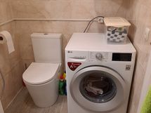 Suihku, Suihkuseinä, Suihkukaappi, Pesukone, Peilikaappi, Halogeenivalot, Laattaseinä