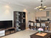 Astu sisään huoneistoon ja sinua tervehtii suuri avoin olohuone ja ruokailutila, joka on sisustettu tyylikkäästi moderneilla kalusteilla ja tyylikkäällä, nykyaikaisella designilla. Olohuoneessa on suuret ikkunat, joista on esteetön näkymä puutarhaan ja uima-allasalueelle. Tilava ruokailutila on täydellinen vieraiden viihdyttämiseen, ja siinä on runsaasti tilaa.