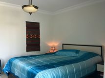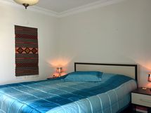 Asunnossa on tilava makuuhuone, jossa on mukava sänky, tyylikkäät kalusteet ja runsaasti säilytystilaa.