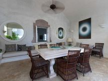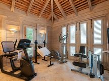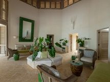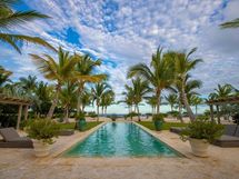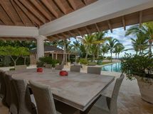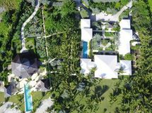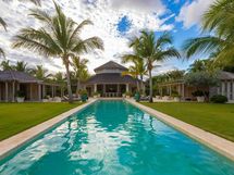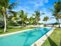 The house sits on two homesites with a total area of 110,333 sq ft and a construction area of approximately 11,836 sq ft. It has 5 bedrooms and 2 staff bedrooms with their kitchen and living area in the main house. And in the guest house has 2 more bedrooms, a kitchenette, laundry area and gym for a total of 7 bedrooms. It comes completely furnished and decorated excluding some personal items. It’s the only property in Corales in the first line of holes 17 and 18 that has 2 homesites.Hinta laskettu kurssilla 0,91975.