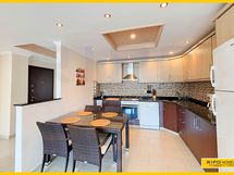 RIPO HOMES koodi:1379-B1-18-P UUSI HINTA! Tämä on loistava tilaisuus hankkia moderni kaksio Mahmutlarin vilkkaassa kaupunginosassa, Alanyassa – upein paikallisilla palveluilla. Tämä kaunis, täysin kalustettu 115 m² asunto on kutsuva ja hyvin suunniteltu, tyylikäs pohjaratkaisu ja tilava olohuone. Kattavat ikkunat peittävät yhtä seinää ja avautuvat kaarevalle parvekkeelle – täydellinen paikka rentoutumiseen tai seurusteluun, josta avautuvat upeat näkymät ympäristöön ja mereen. Keittiö, amerikkalaistyylinen ja olohuoneen kulmassa, on eristetty eteistilasta ja näppärästi sijoitettu. Asunnossa on myös kaksi makuuhuonetta – toinen parvekkeella varustettuna, toinen oma makuuhuone, jossa on oma kylpyhuone ja yksityinen parveke vuoristonäkymillä. Suuri perheen kylpyhuone kulmasuihkulla täydentää tämän ihastuttavan asunnon. Asunto sijaitsee suositulla asuinalueella vain 630 metriä hiekkarannasta, ja yhteyksiä kauniiseen maaseutuun on runsaasti. Taloyhtiön tiloihin kuuluvat uima-allas, pallokenttä, pelihuone, kuntosali ja sauna – täydellisiä lepohetkiä varten kotona. Kaikki tarvittava löytyy läheltä – kaupat, torit, baarit ja ravintolat – ja Alanyan keskustaan on vain 11 km.
