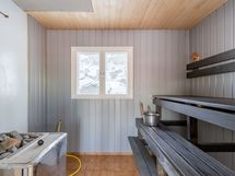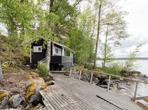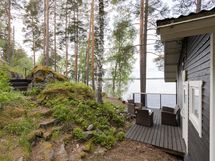 Päämökki 35m2 (+katettu kuisti 10m2), sauna 14m2, nukkuma-aitta 10m2