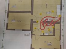 Keittiössä on ollut vesivahinko, ja lattiat tulee uusia keittiössä, vessassa ja eteisessä. kuvassa on ote vahinkotarkastajan raportista (4.3.2024).