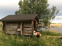 Nyt harvoin tarjolla oleva erämökki Muonionjoen rantatörmällä.