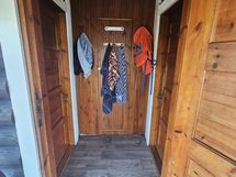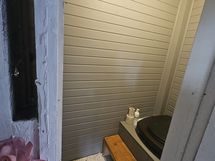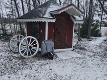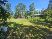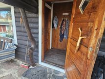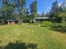 Ulkona piharakennus + kompostoiva ulkohuussi, toinen 20m² hirsimökki mikä toimii vierasmajana, kota ja leikkimökki.