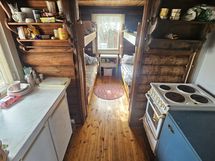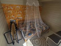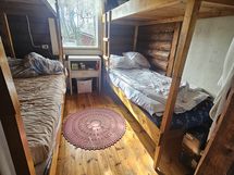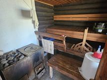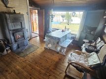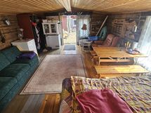 Saaresta 2200m² tontti eikä muita asukkaita/tontteja. 1954 rakennettu n. 40m² hirsimökki missä makuukammari jossa on kaksi kerrossänkyä. Keittokomero, olohuone, hyvin varaava takka ja sauna.