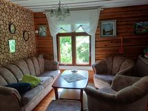 Paksusta kirveellä veistetystä hirrestä rakennettu mökki+pieni pihamökkåi. Mökissä 65m2. Tupakeittiö, makuuhuone, tilava sauna ja erillinen pesuhuone. Iso katettu kuisti.Tupakeittiössä on puu kamiina jossa 2 keittolevyä. Siellä on myös sähköhella ja jääkaappi. Pihamökissä 16,5 m2. Huone +Makuutila. Makuupaikkoja on 4-6 hengelle Tontinkoko melkein hehtaarir ( n. 9800 m2). Mökin pihassa uimakelpöinen Lampi ja laituri mistä pääsee uimaan. Lammessa on myös pieni saari ja siellä vanha huvimajakattos. Saareen menee silta. Mökissä on v. 2022 laitettu uusi Ruukin peltikatto. Sauna on puulämmitteinen. Pesuhuoneessa on iso pata joka lämpiää puilla. Pihassa on varastorakennus jossa puucee.