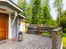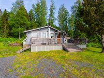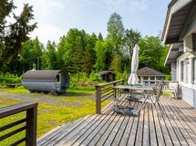 Unelmien kesänviettopaikka Forssan Matkussa. Tunti Tampereelta, tunti Turusta, aivan Pirkanmaan ja Kanta-Hämeen rajalla. Tästä kokonaisuudesta ei puutu elementtejä rentouttavaan vapaa-ajan viettoon. Päärakennuksen lisäksi pihasta löytyy mm. tynnyrisauna, terassi, palju, grillikota, puuliiteri, käymälä, varasto sekä iso autotalli/verstas. Lampi tuo pihaan upean lisäelementin. Yli hehtaarin tontti riittänee isommallekin porukalle lemmikkeineen. Vesi nousee sekä pora- että rengaskaivosta. Ilmalämpöpumppu ja takka pitävät mökin sopivassa lämmössä ympäri vuoden. Varaa esittely ja tule ihastumaan!
